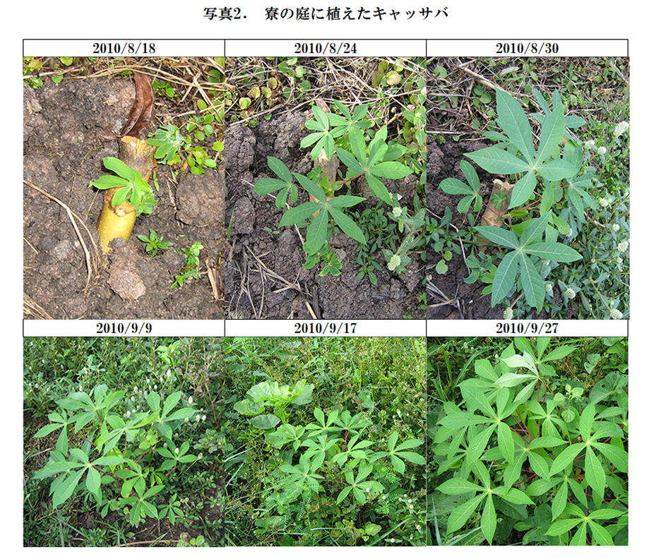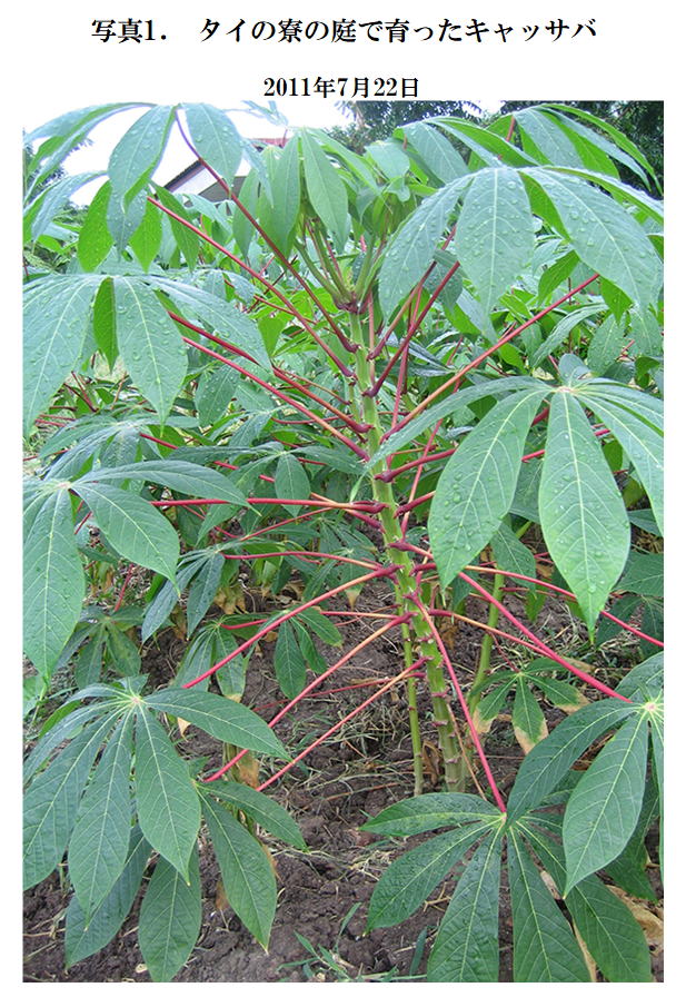 前節のドラゴンフルーツと同じく写真1のキャッサバもタイの寮の庭に植えられた。