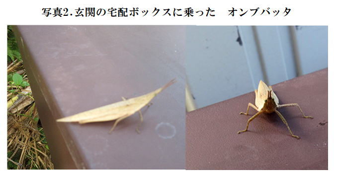 画像検索をすると「オンブバッタ」のオスだと分かった。