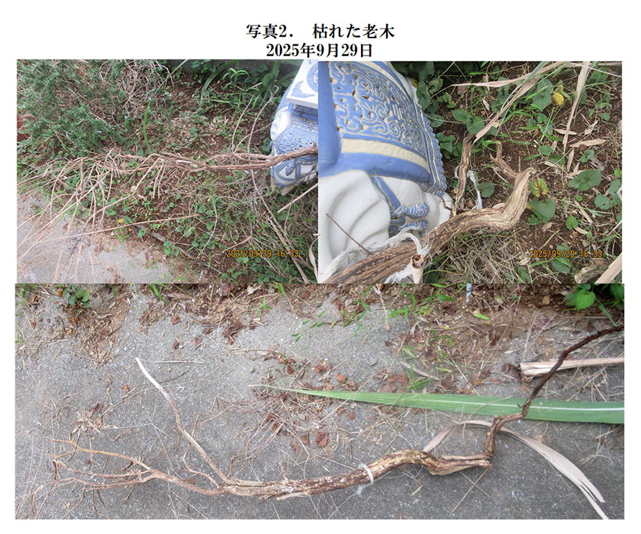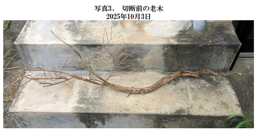 写真2、写真3は枯れて分離した枯れた老木である。