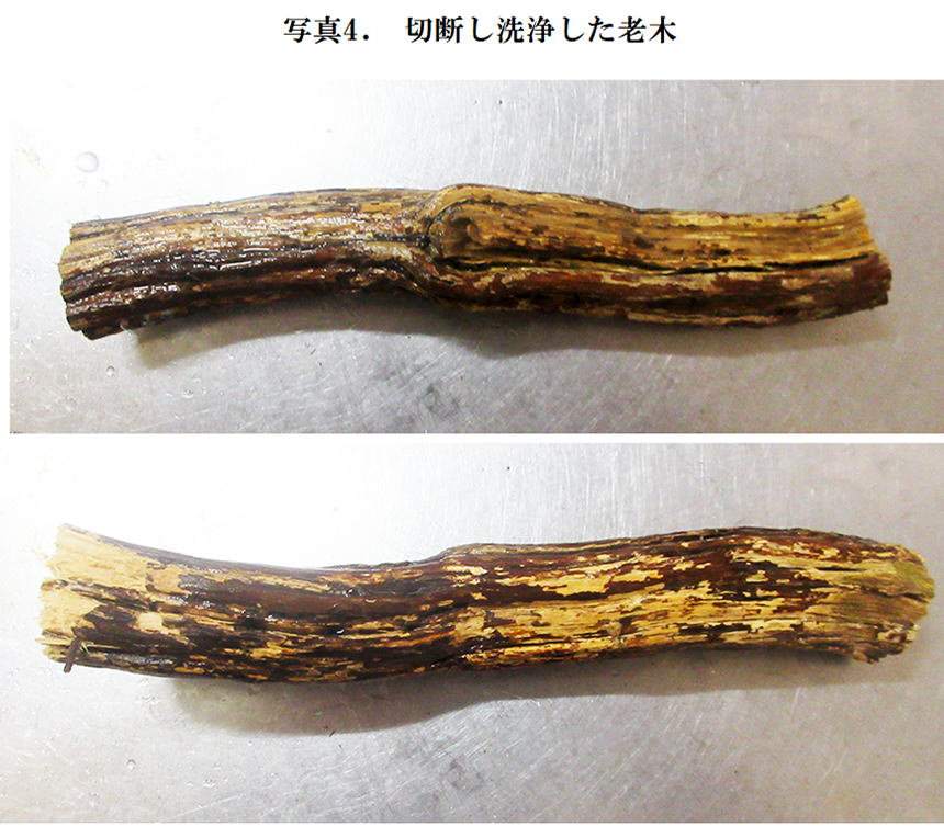 写真は切断し洗浄した老木の一部分である。