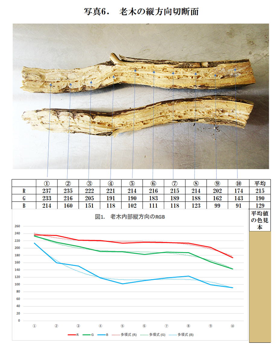 写真6は老木の縦方向の切断面画像である。