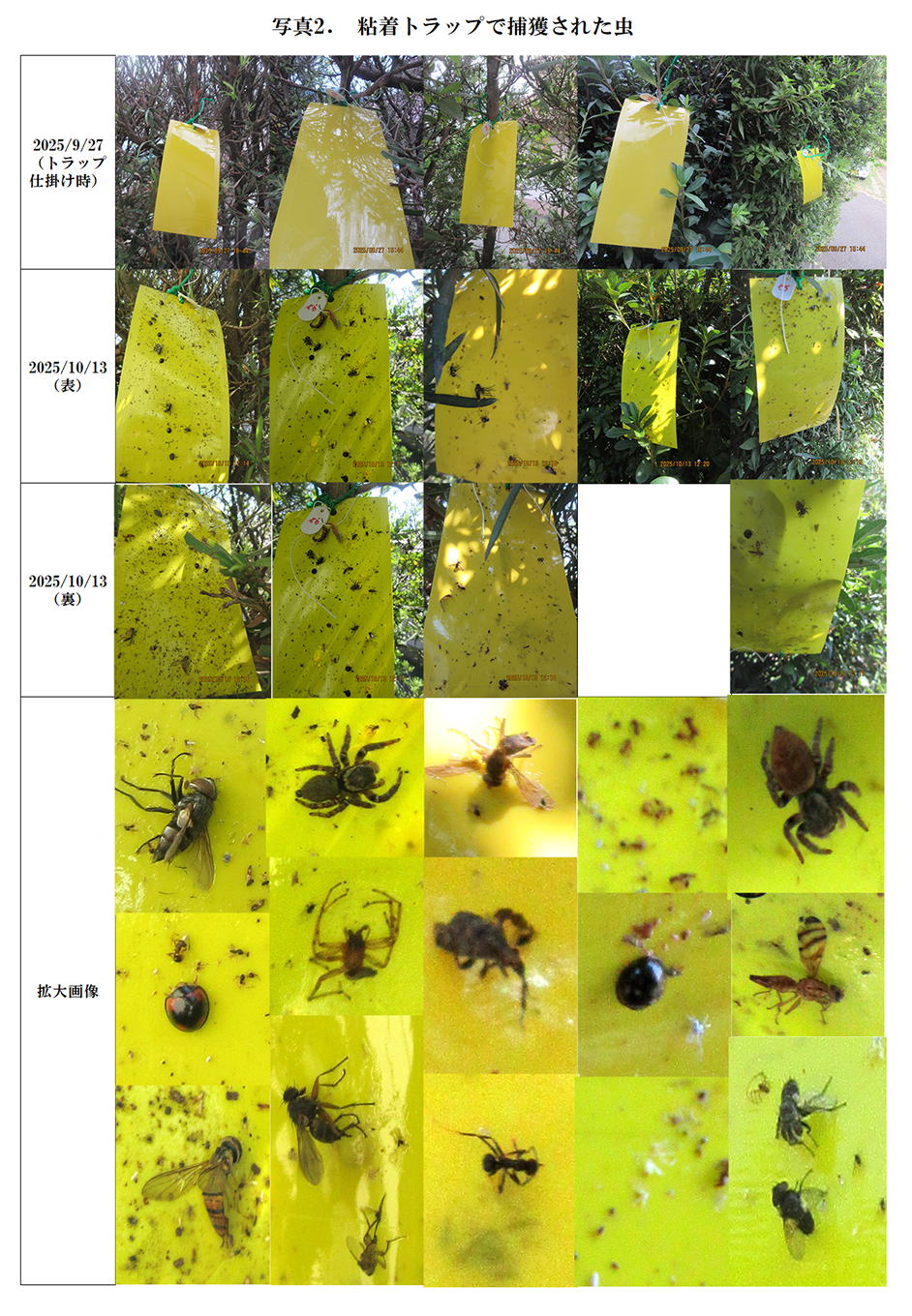 粘着トラップには写真2に示すように色々な虫が付着した。