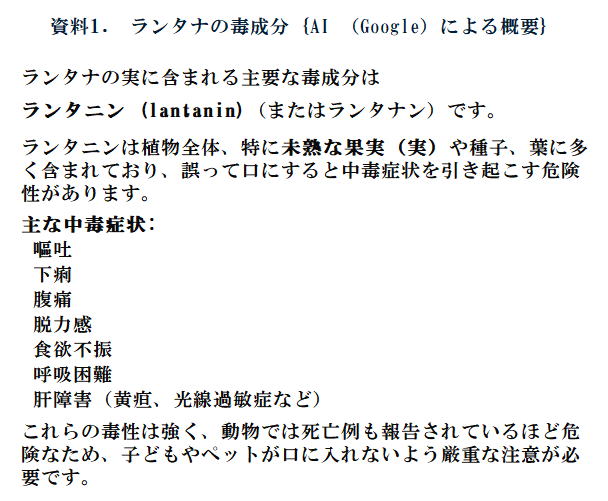 実はランタナの実には毒がある。(資料1)