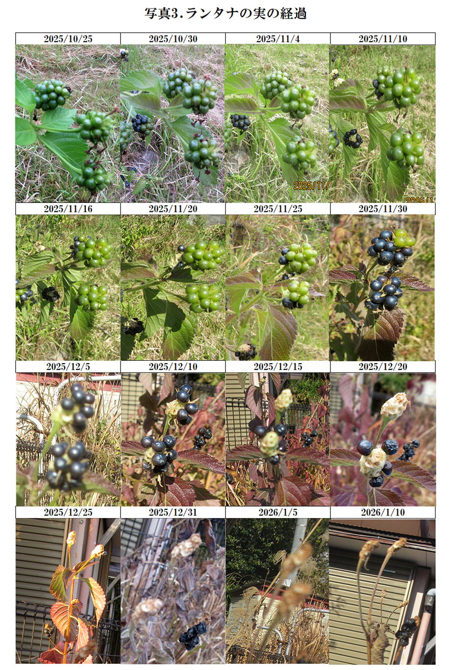 写真3は2025年10月25日から2026年1月6日までの実の経過である。