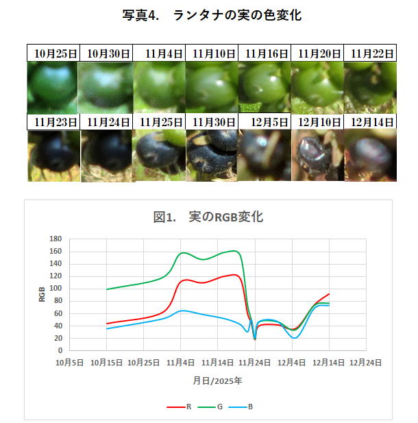写真4は実の色変化、図1はそのRGB変化である。