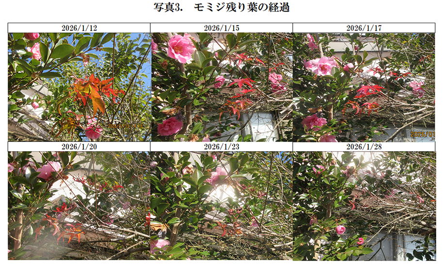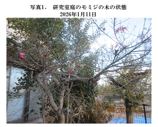 私設研究室の庭にあるモミジは毎年11月下旬から12月上旬にかけて美しく紅葉する。(第438節 写真4)
