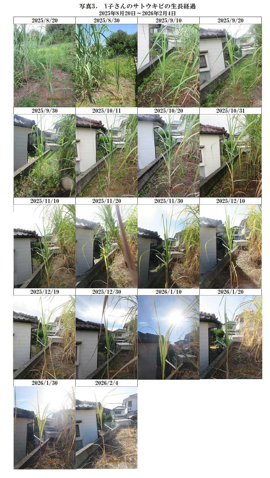 655. (続)Y子さんのサトウキビの生長 2026年2月5日