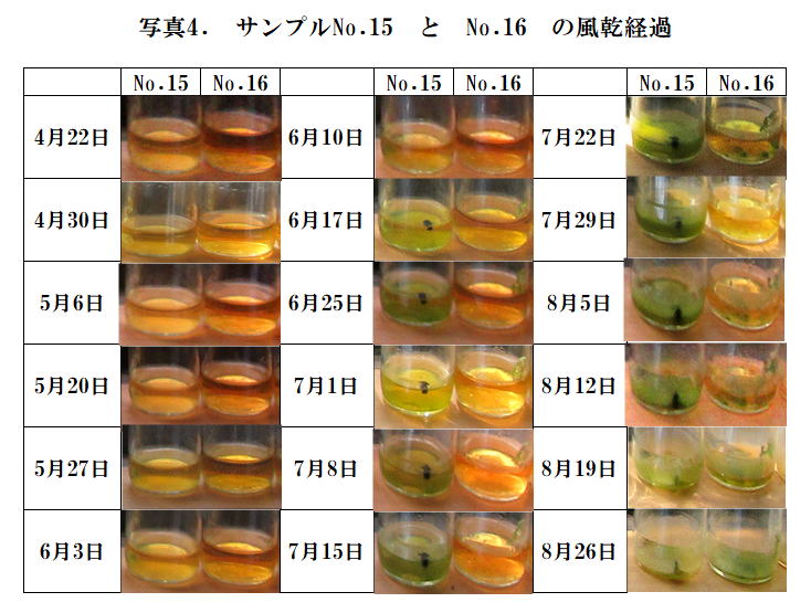 風乾経過を見るとNo,15とNo.16にシアノバクテリアが発生した。