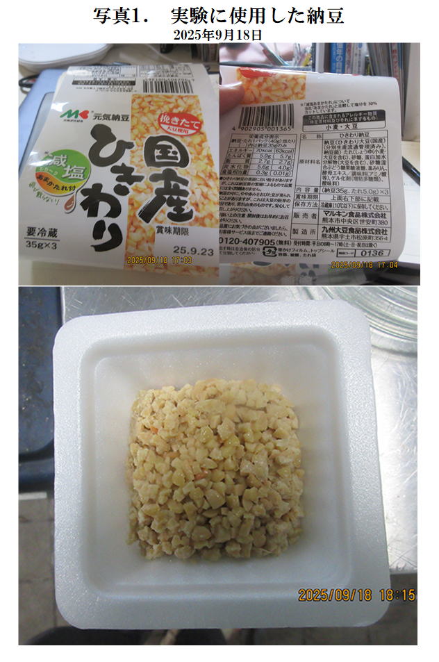 使用した納豆を写真1に示した。