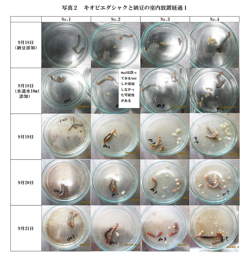 529. キオビエダシャクの幼虫に及ぼす納豆の影響 2025年11月13日