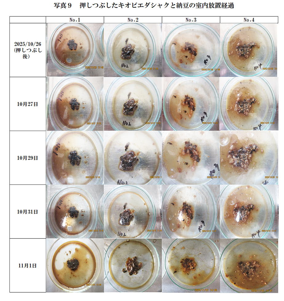分解された幼虫の成分は納豆菌の養分になっていると考えられる。