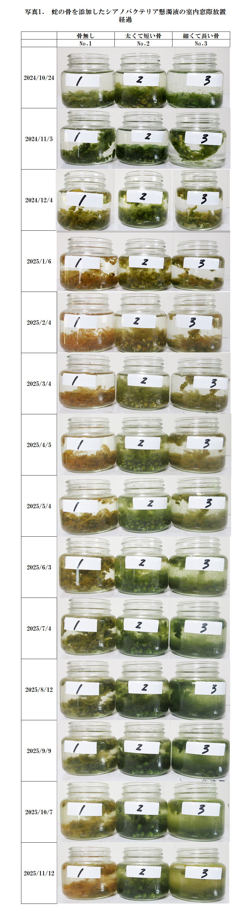 531.蛇の骨を添加したシアノバクテリア懸濁液 2025年11月23日