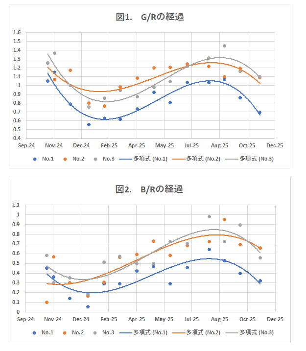 またG/Rの大きさは蛇の骨を添加していないNo.1が全期間を通じて最も小さかった。