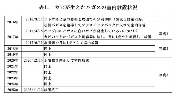 バガスを採取したのが2016年3月14日、放置を終了したのが2025年11月12日であるから、総放置時間は9年8ヶ月となった。