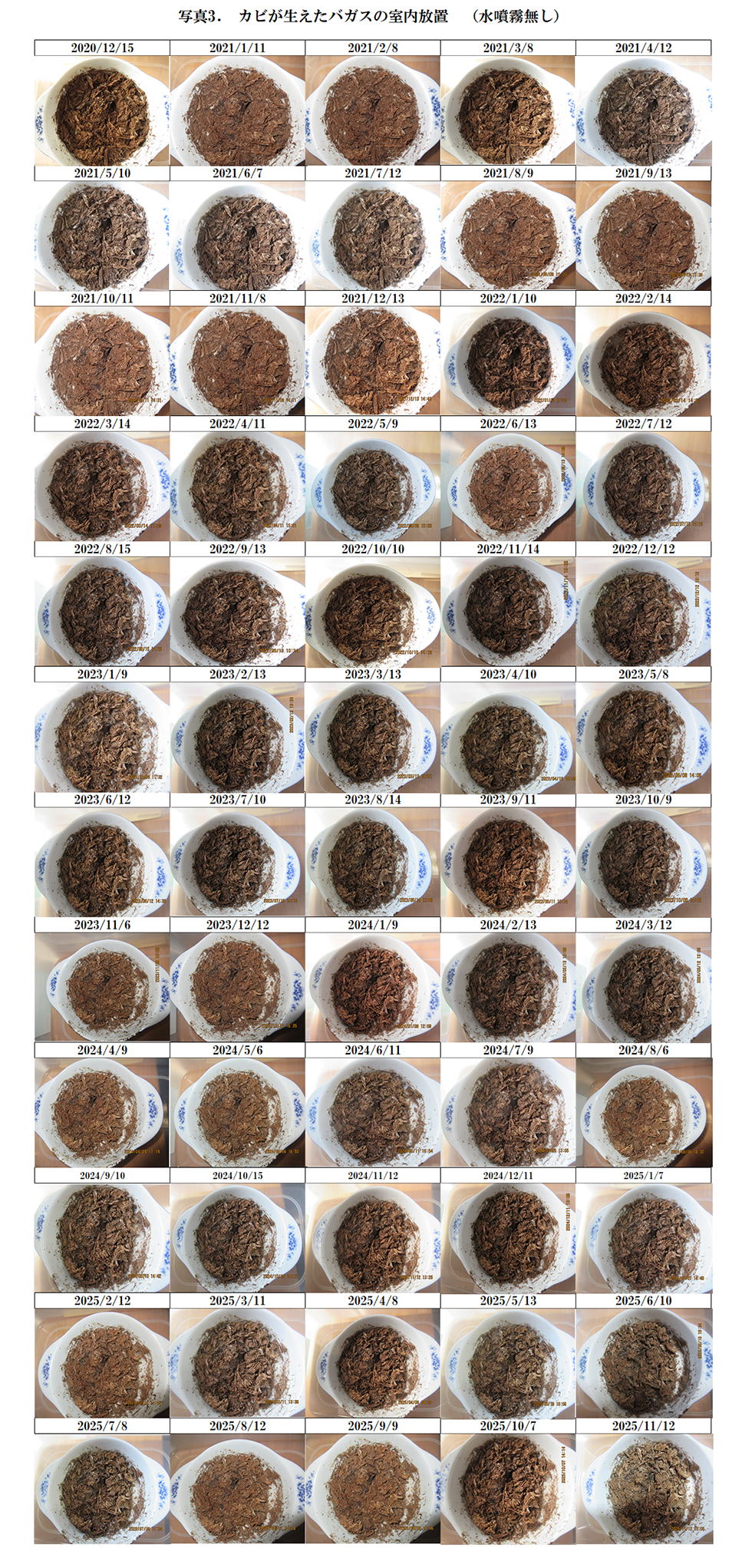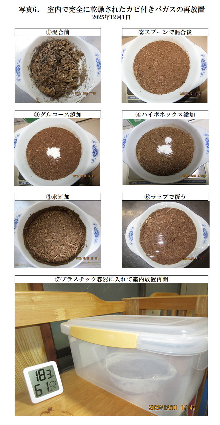 533.カビが生えたバガスの室内放置 2025年12月5日
