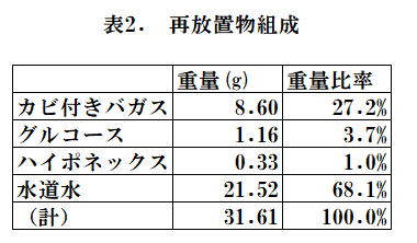 放置を終了したバガスに栄養源(グルコースとハイポネックス)を添加し、さらに水道水を添加して放置を再開した。