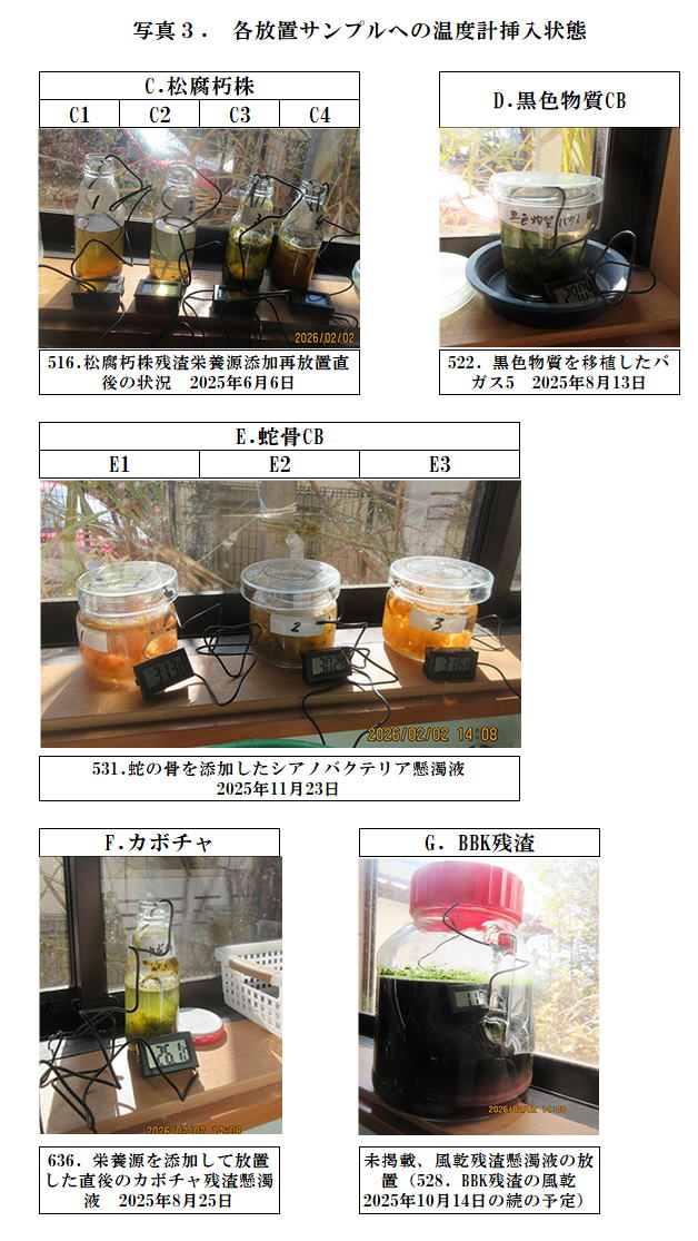 写真3.は各サンプルへの温度計挿入状態である。