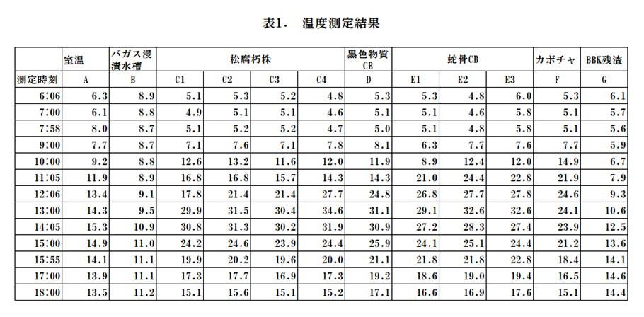 松腐朽株C1:30.8℃(14:05)、C2:31.5℃(13:00)、C3:30.4℃(13:00)、C4:34.6℃(13:00)