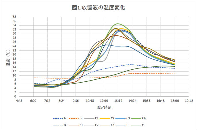 図1は放置液の温度変化をグラフ化したものである。